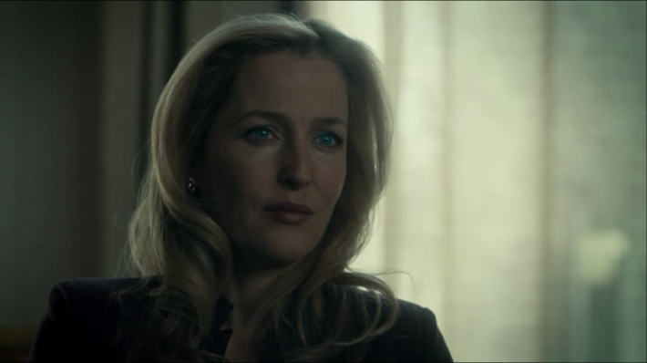 Instead, Hannibal takes a trip to his own therapist, and we meet one of Hannibal's best guest stars. Gillian Anderson arrives as Dr. Bedelia du Maurier, a retired psychiatrist who nevertheless still sees Hannibal, simply because she finds him interesting. She also understands him better than anyone, better even than Will. In a very revealing bit of their conversation, she deduces that Hannibal wears a "very well-tailored person suit," or, at least, a "human veil." Hannibal, against all odds, doesn't snap back, but tries to defend himself. He talks about his friends, then makes the mistake of calling Bedelia one of his friends. Just as Hannibal did with Franklyn, she puts him in his place, and makes it clear their relationship is a professional one, even if they do share the occasional glass of wine.