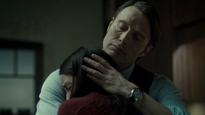 Again, this is Mikkelsen in MVP mode for the show, because even after we've seen all of his pieces fall into place on the board, even as the show makes it extremely clear that he's manipulating everyone at all times, Hannibal still seems to genuinely feel something for Abigail in this moment. If only, he seems to think, he'd had a parental figure like himself growing up, a guide for what he'd become. He can be that for Abigail. He can be her Favorite Dad, while Will not only plays second fiddle, but submits entirely to Daddy Hannibal's dominance. Yes, the sexual metaphor is both deliberate and apt here. We're playing house at the Lecter place, and the freezer is stacked with red meat. Hannibal's building his totem. The only question left is who will end up at the top.